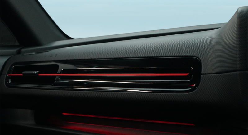 - Red stitchings and piping on steering wheel and seats
